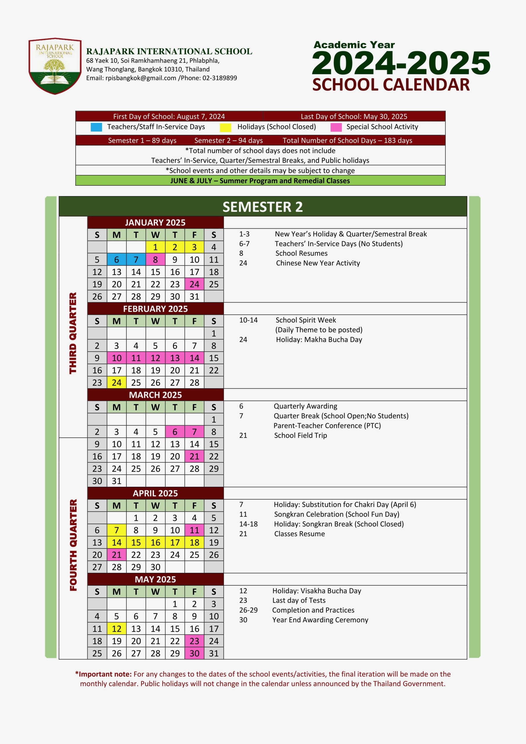 Academic Calendar 2025 January - May